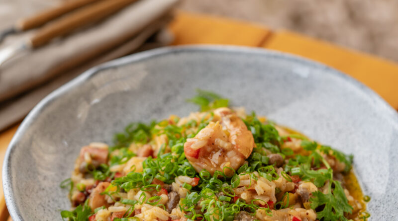Entre os destaques do menu está o Baião de Frutos do Mar, releitura do tradicional baião de dois. O prato é preparado com baião cremoso à base de feijão verde, bacon, queijo coalho e nata, enriquecido com caldo de crustáceos e combinado a ingredientes típicos do litoral, como mexilhão, lula, polvo e camarão. A finalização com cebolinha e coentro reforça os sabores característicos da culinária regional.
