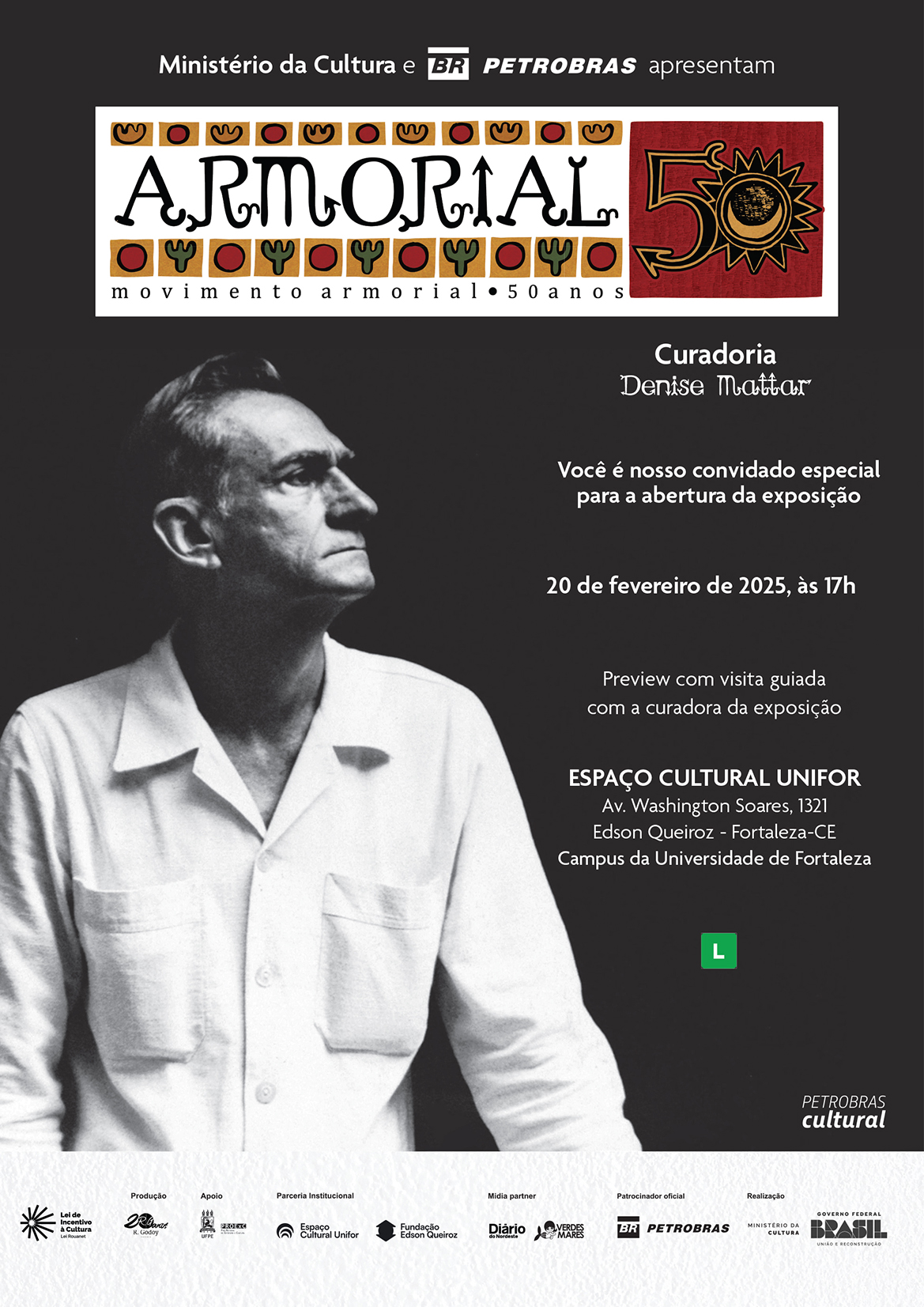 Graças ao Patrocínio Oficial da Petrobras, com a realização do Ministério da Cultura, por meio da Lei Federal de Incentivo à Cultura, o projeto ganhou novos contornos pelo Brasil em nova temporada no Nordeste, que se encerra em Fortaleza, com uma celebração que destaca a riqueza e o impacto do Movimento Armorial no cenário artístico nacional. “ARMORIAL 50” não é apenas uma exposição de arte, mas uma celebração cultural que promete envolver e emocionar todos os visitantes.
