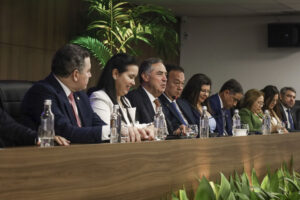 “Fui advogado por 30 anos, de modo que vir à OAB, para mim, é extremamente natural, faz parte do meu papel. A justiça é um pacote completo: é feita de juízes, advogados, membros do Ministério Público e defensores públicos. Tenho viajado por todo o país, visitando tribunais e, sempre que possível, a Ordem dos Advogados. A justiça é fruto do diálogo, e precisamos mantê-lo de forma saudável, com cada um cumprindo seu papel, mas com harmonia, respeito e consideração, mesmo na divergência como a vida deve ser”, afirmou o presidente do STF, Luís Roberto Barroso, que disse que tem “alma de advogado”.