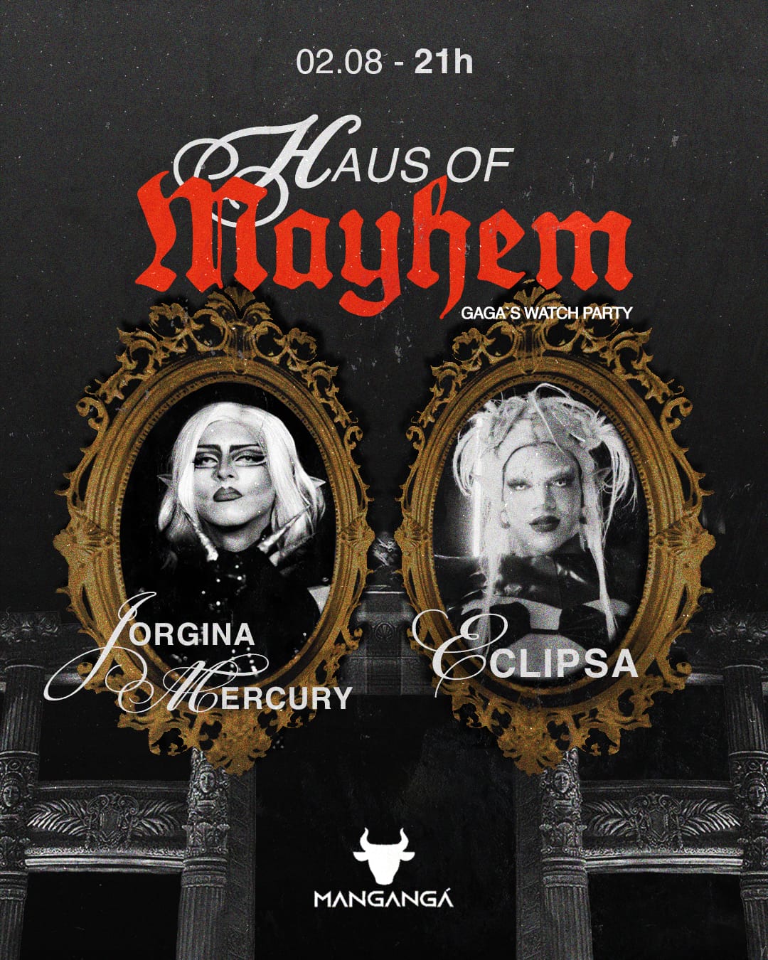 Os ingressos para a Haus of Mayhem: GAGA Watch Party estão disponíveis online, através do link na bio do Instagram @mangangapub.
