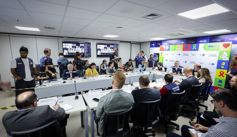 COMO FUNCIONA — A Sala de Situação é de caráter colegiado e temporário e será coordenada pela Secretaria de Vigilância em Saúde e Ambiente (SVSA) do Ministério da Saúde. O grupo reúne representantes de diferentes secretarias da pasta, além de Anvisa, Fiocruz, Ebserh, Conass, Conasems, CNS e das secretarias de Saúde de São Paulo e Pernambuco. Também participam os ministérios da Agricultura e Pecuária e da Justiça e Segurança Pública, responsáveis por ações de controle e investigação.