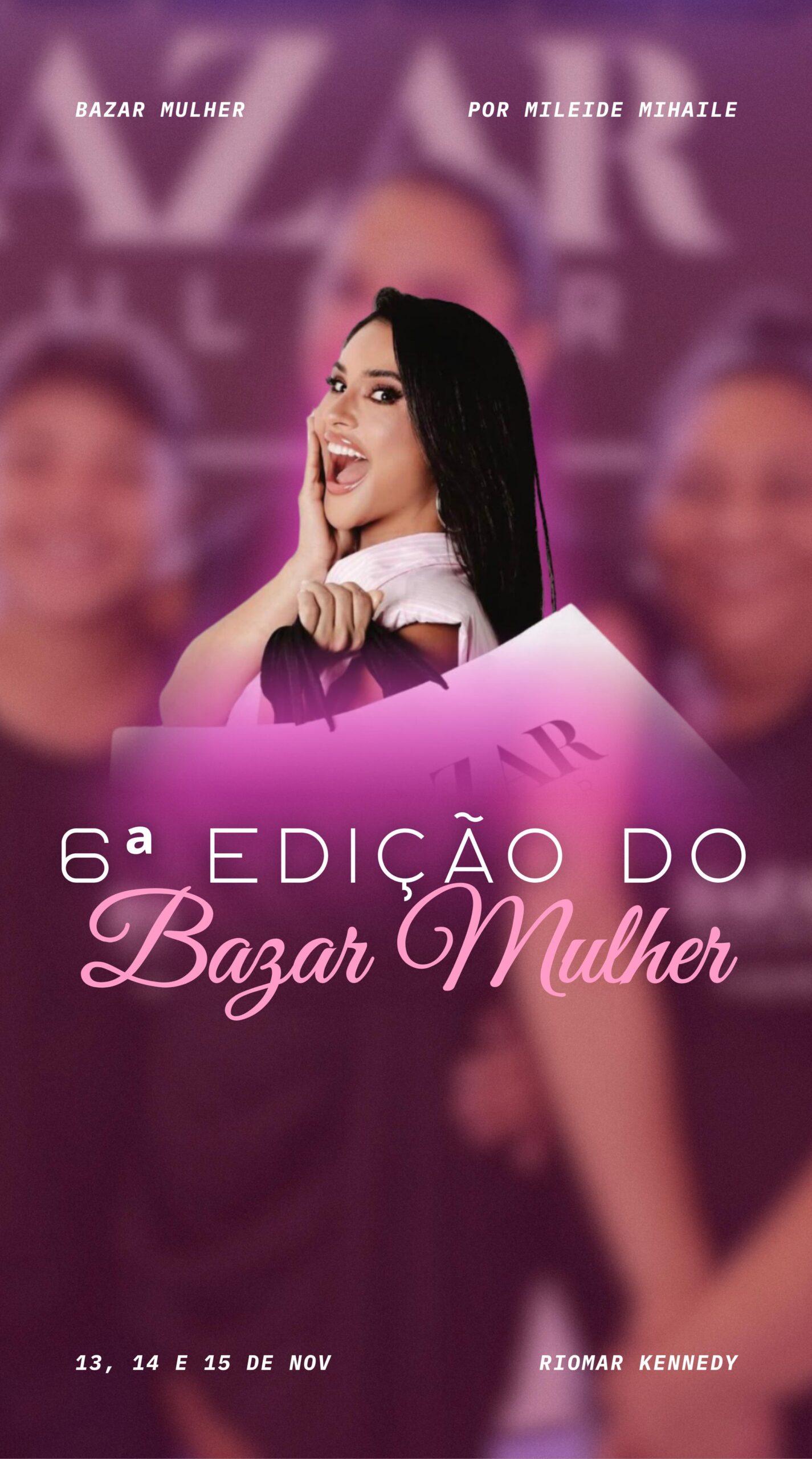 A influenciadora e empresária Mileide Mihaile promove, nos dias 13, 14 e 15 de novembro, a 6ª edição do Bazar Mulher, evento beneficente que já se tornou tradição em Fortaleza. A iniciativa acontece no Shopping RioMar Kennedy e une moda, solidariedade e propósito em um só espaço.