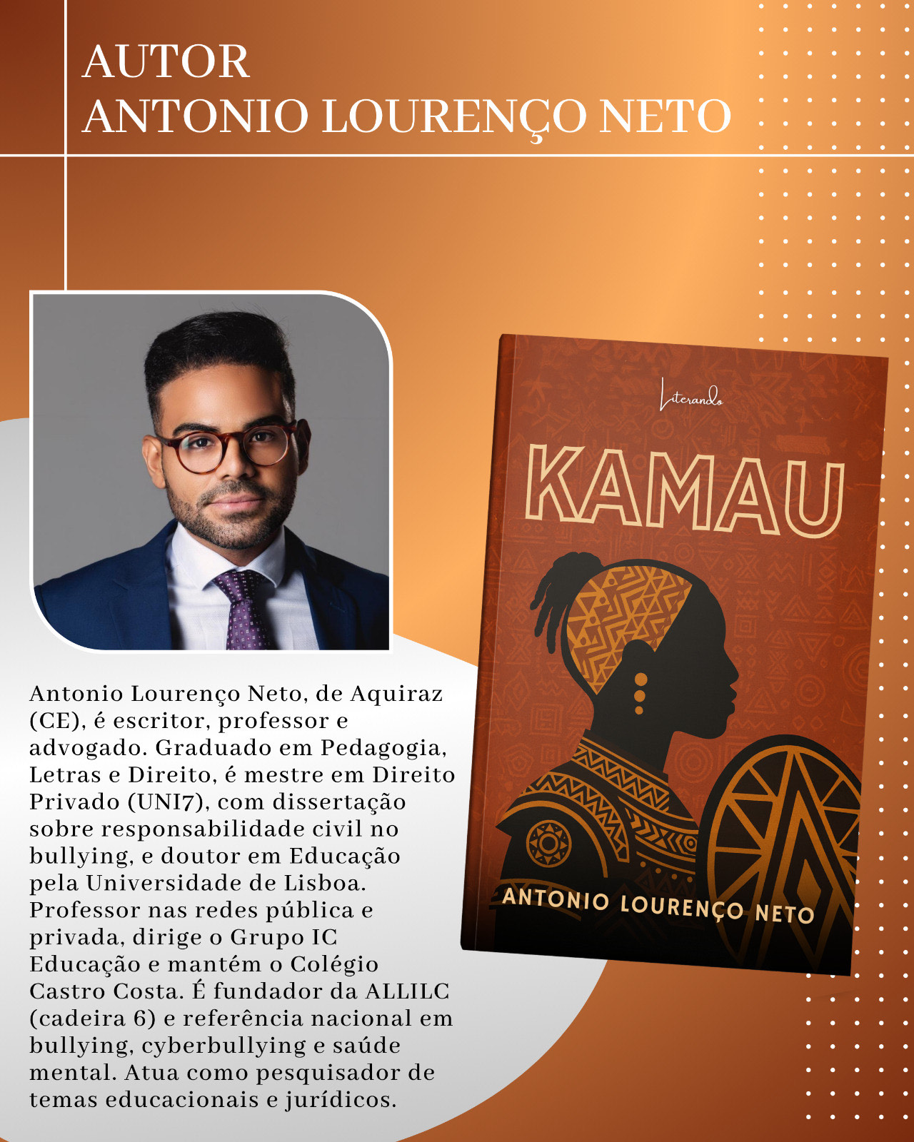 Um dos temas mais urgentes da atualidade ganha forma literária em Kamau, romance infantojuvenil que chega ao mercado convidando leitores, educadores e famílias a refletirem sobre bullying, cyberbullying, desigualdades sociais e racismo na adolescência. A obra, escrita pelo Prof. Dr. Antônio Lourenço Neto, será lançada no dia 17 de dezembro de 2025, na Academia Cearense de Letras, em Fortaleza.