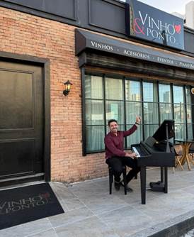 Inquieto, fundou a primeira empresa especialista em locação de pianos de cauda para eventos no estado. Essa veia empreendedora entregou para a cidade, há três anos, um espaço diferenciado que une música, gastronomia e bons vinhos. Conforme explicou Felipe Adjafre, “a música une pessoas e acalma a alma. Então, porque não proporcionar um momento especial para quem deseja se juntar na calçada, em frente à Vinho & Ponto Fortaleza, ou mesmo para quem está só de passagem, de carro ou caminhando”. Impossível resistir!
