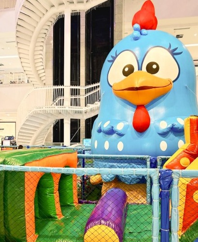O circuito do parque conta com módulos infláveis, obstáculos sensoriais, piscina de bolinhas, games, área de pintura, corredor de elásticos, tapetes interativos, escorregadores e camas elásticas. Além disso, uma Galinha Pintadinha gigante de 5 metros de altura estará disponível para fotos, garantindo momentos inesquecíveis e compartilháveis nas redes sociais.