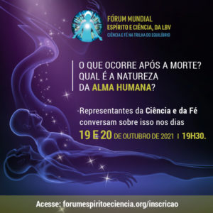 Já tem data confirmada para ocorrer a edição de 2021 do Fórum Mundial Espírito e Ciência, da Legião da Boa Vontade (LBV): dias 19 e 20 de outubro. Será em formato on-line e vai contar com transmissão simultânea em português, inglês, espanhol e Libras, pelo YouTube.